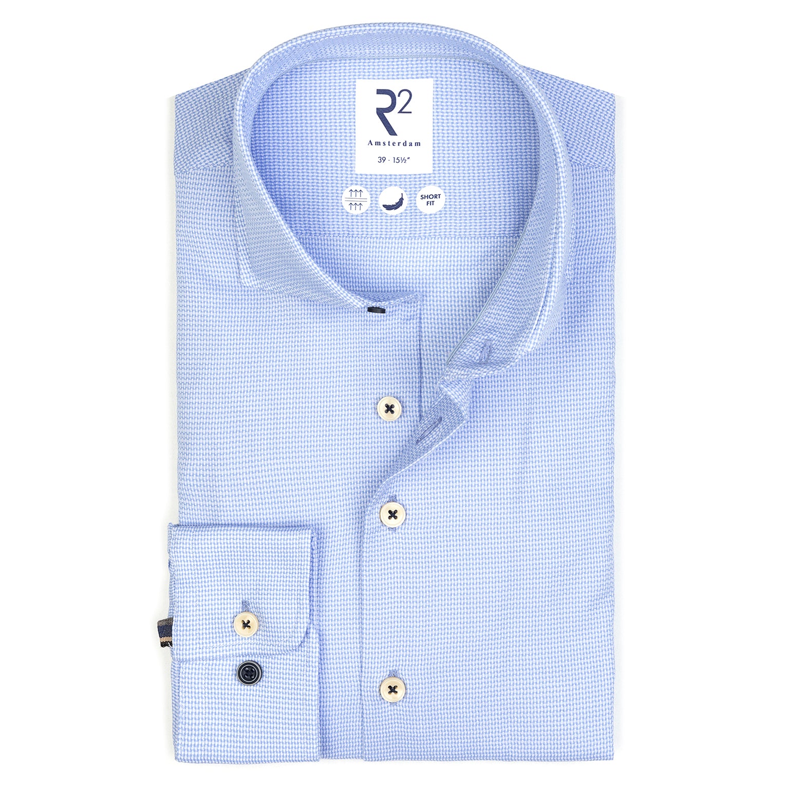 This cotton shirt in dobby weave is finished with a light blue structured design. Lightweight, breathable and versatile, it delivers timeless comfort with refined texture.