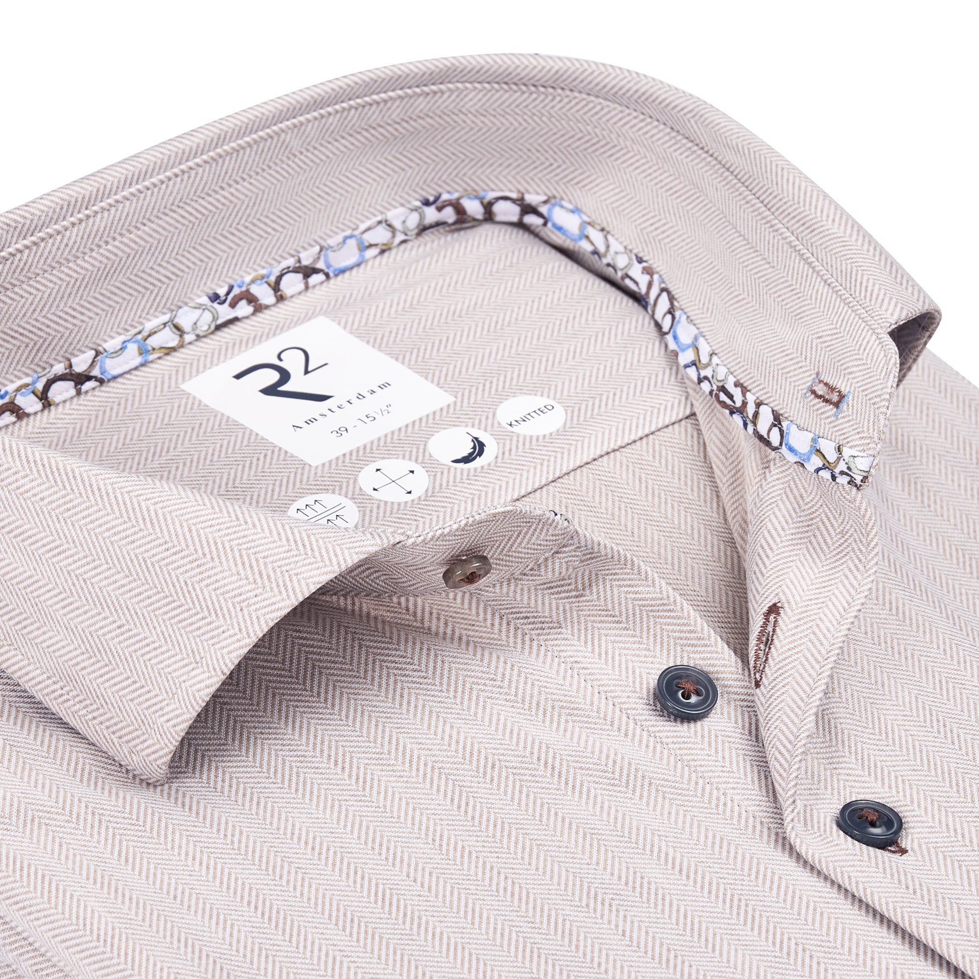 Woven from a cotton blend, this extra long sleeve travel shirt features a herringbone weave for a distinctive, timeless look. Designed for taller men, the longer sleeves provide better proportions and a comfortable fit, making it a practical choice for both work and casual wear.