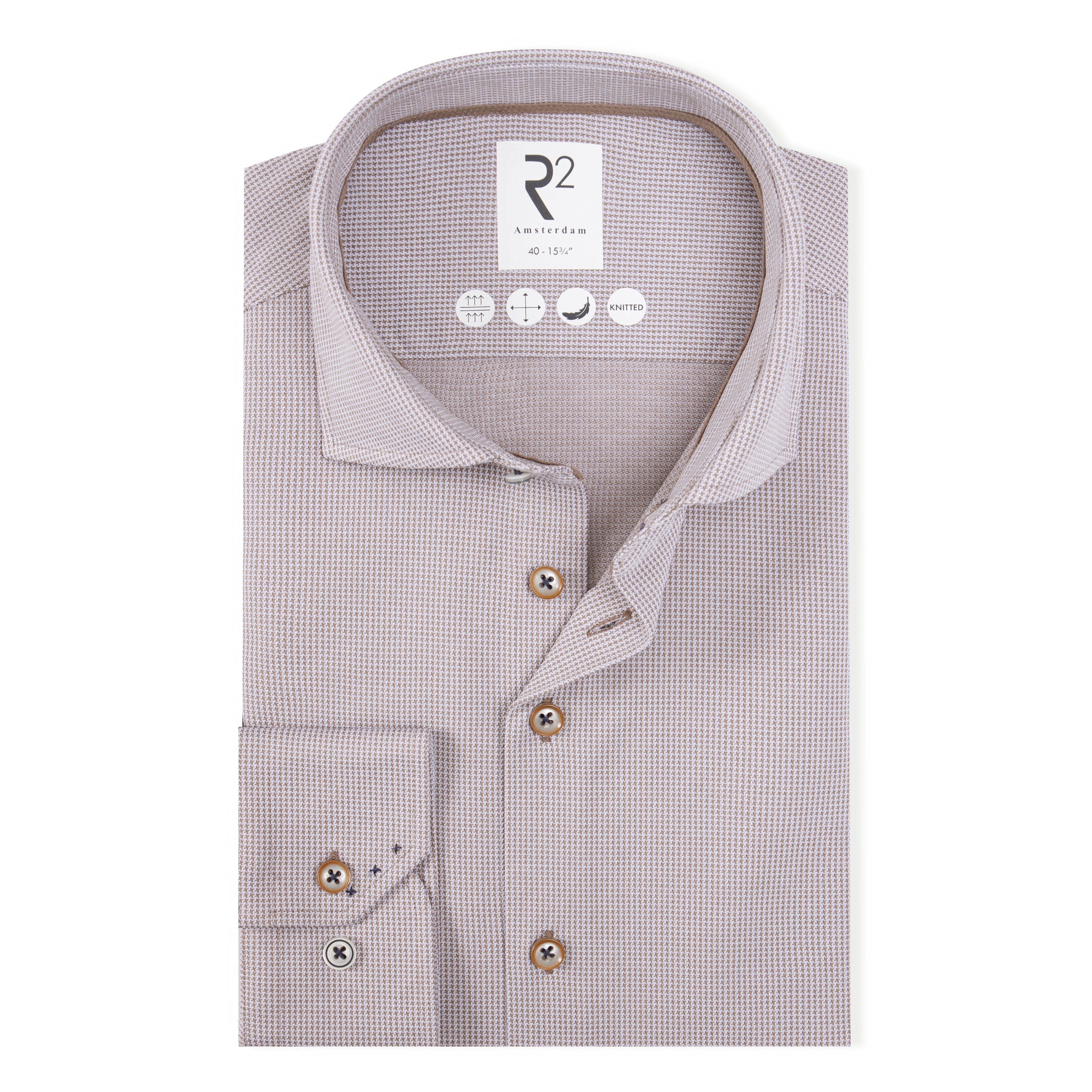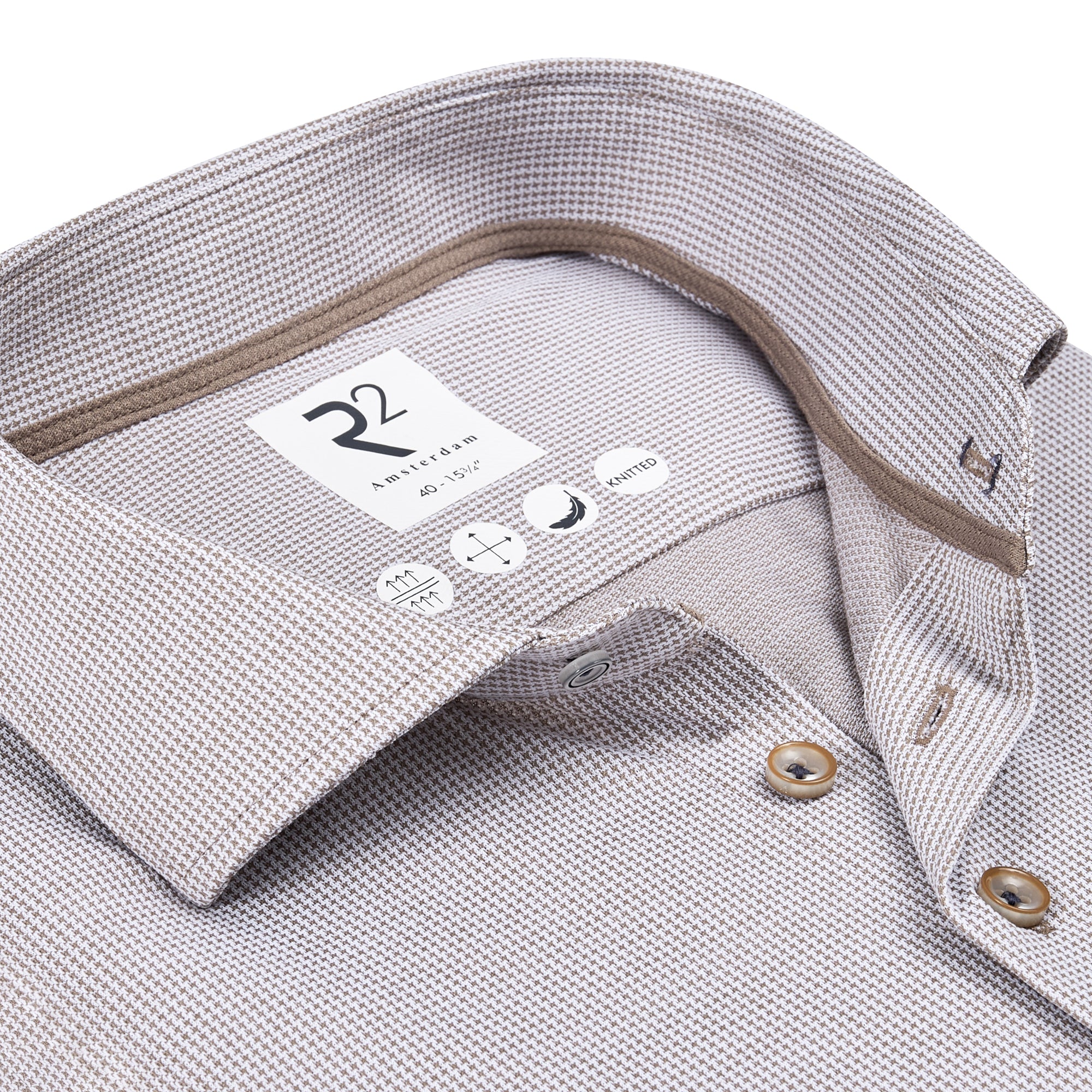 This travel shirt in a beige pied de poule knit blends soft cotton and polyester for a refined yet relaxed feel. With its subtle pattern, it offers understated elegance for everyday wear.