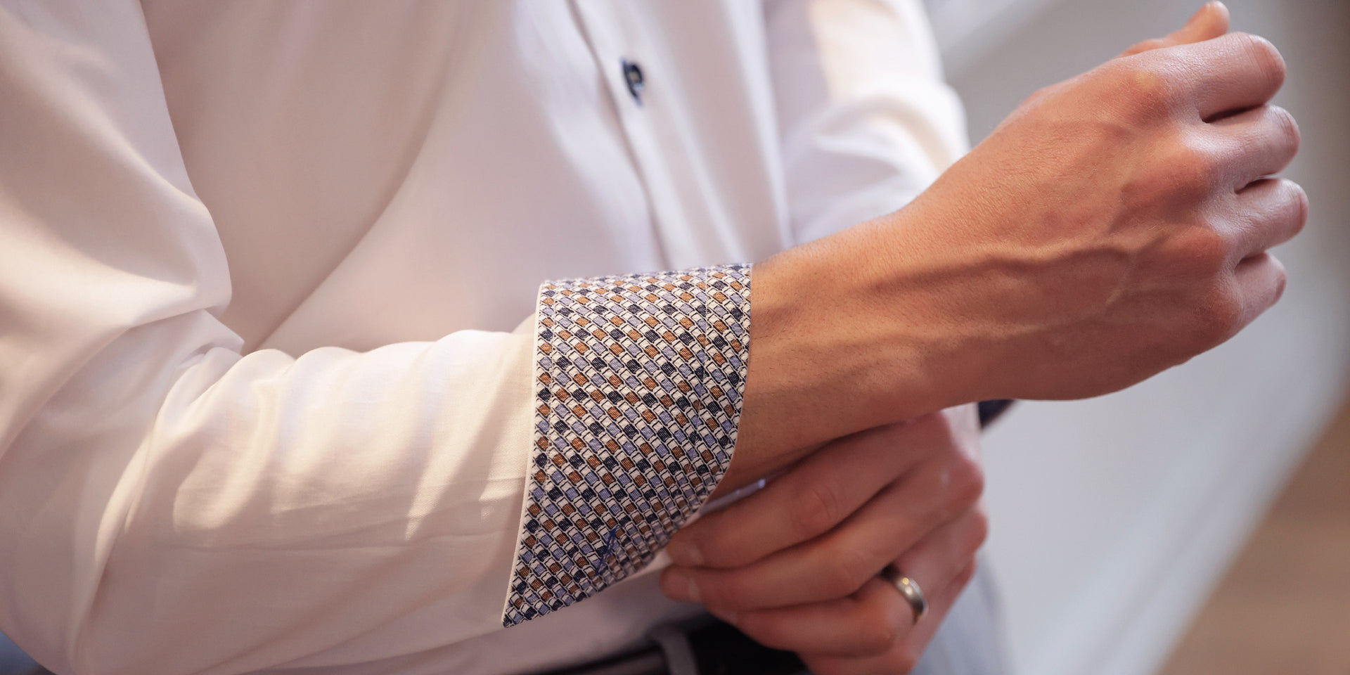 Extra lange Ärmel. Bedrucktes Stretchhemd Extra lange Ärmel. Bedrucktes Stretchhemd