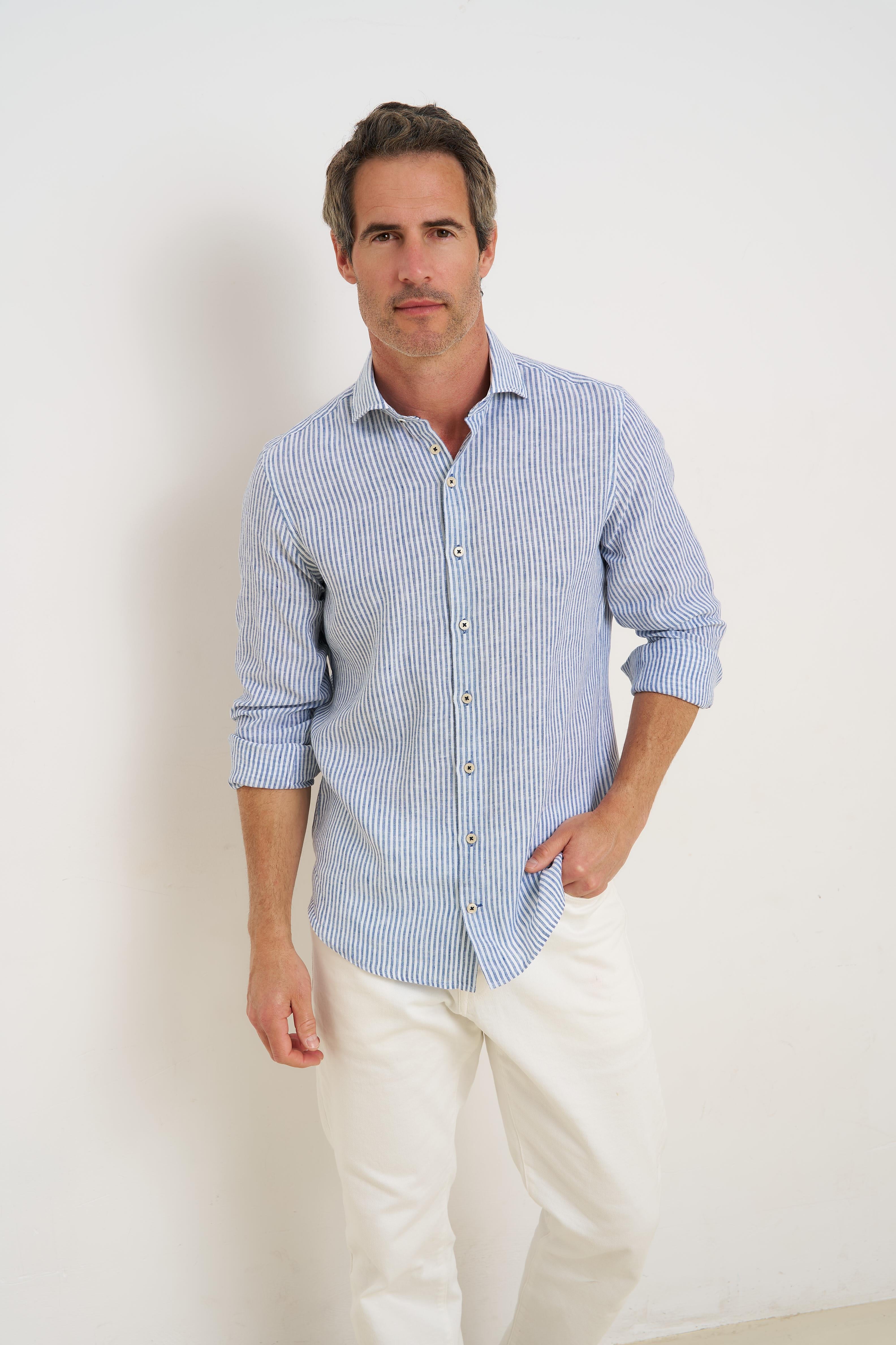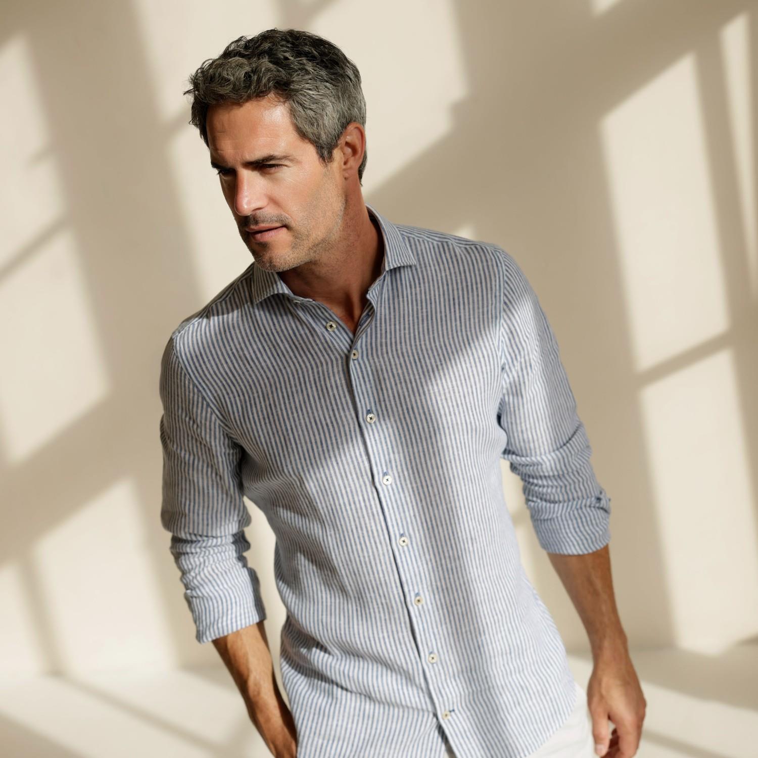 Dieses Hemd ist aus einer bequemen Leinenmischung gefertigt, die ihm einen leichten, natürlichen Look verleiht. Das gestreifte Design setzt dezente Akzente, während sich der Stoff angenehm und atmungsaktiv anfühlt. Ein lässiges und dennoch elegantes Hemd, das sich gut für den Alltag eignet.