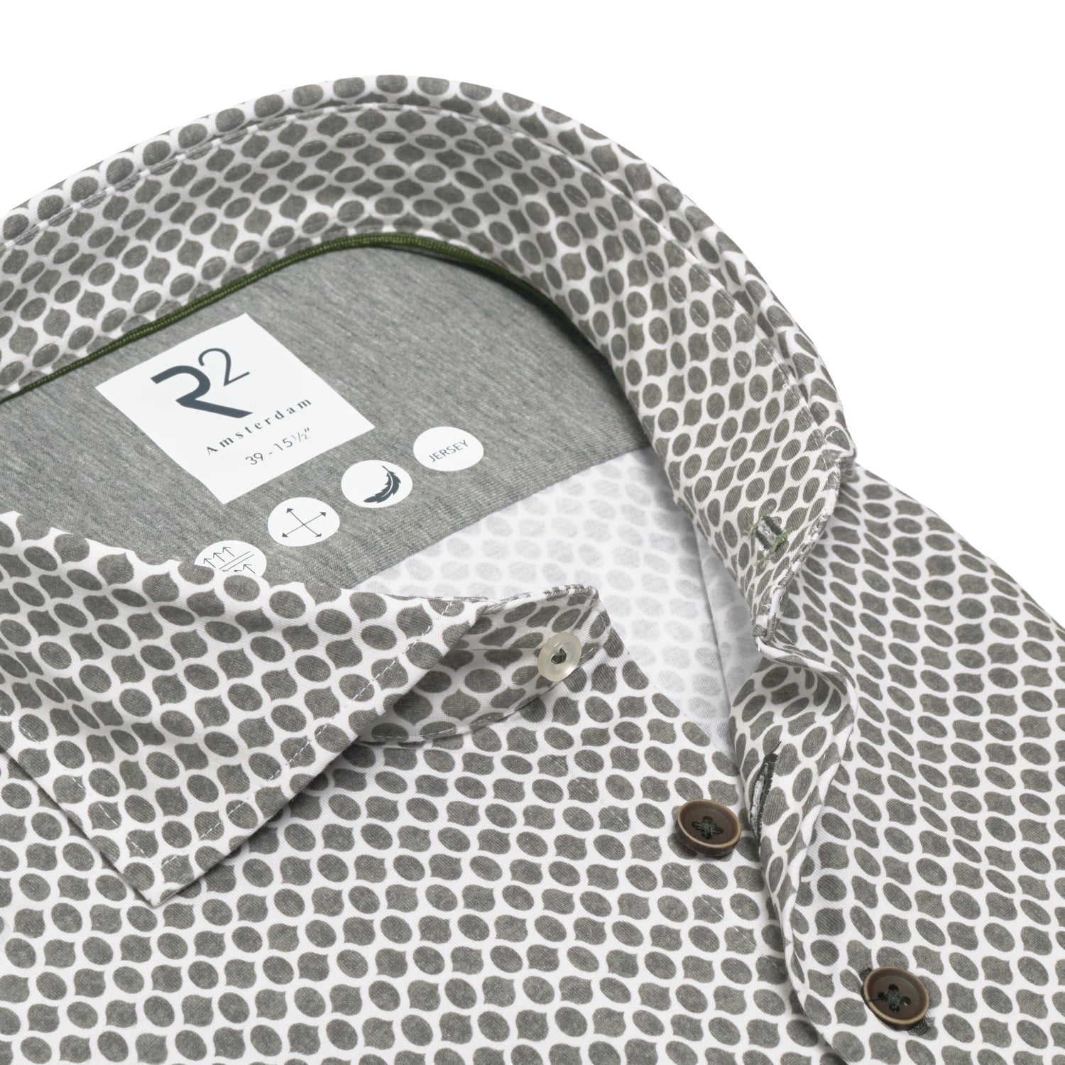 Dieses bedruckte Hemd aus Single-Jersey vereint lässigen Tragekomfort mit einem auffälligen Look. Es ist aus weichem, dehnbarem Jersey-Baumwollstoff gefertigt und bietet ein entspanntes Tragegefühl und eine bequeme Passform. Der durchgehende Print verleiht dem Hemd Persönlichkeit, ohne aufdringlich zu wirken, und macht es zur perfekten Wahl für Freizeit-Outfits, die dennoch Stil beweisen sollen.