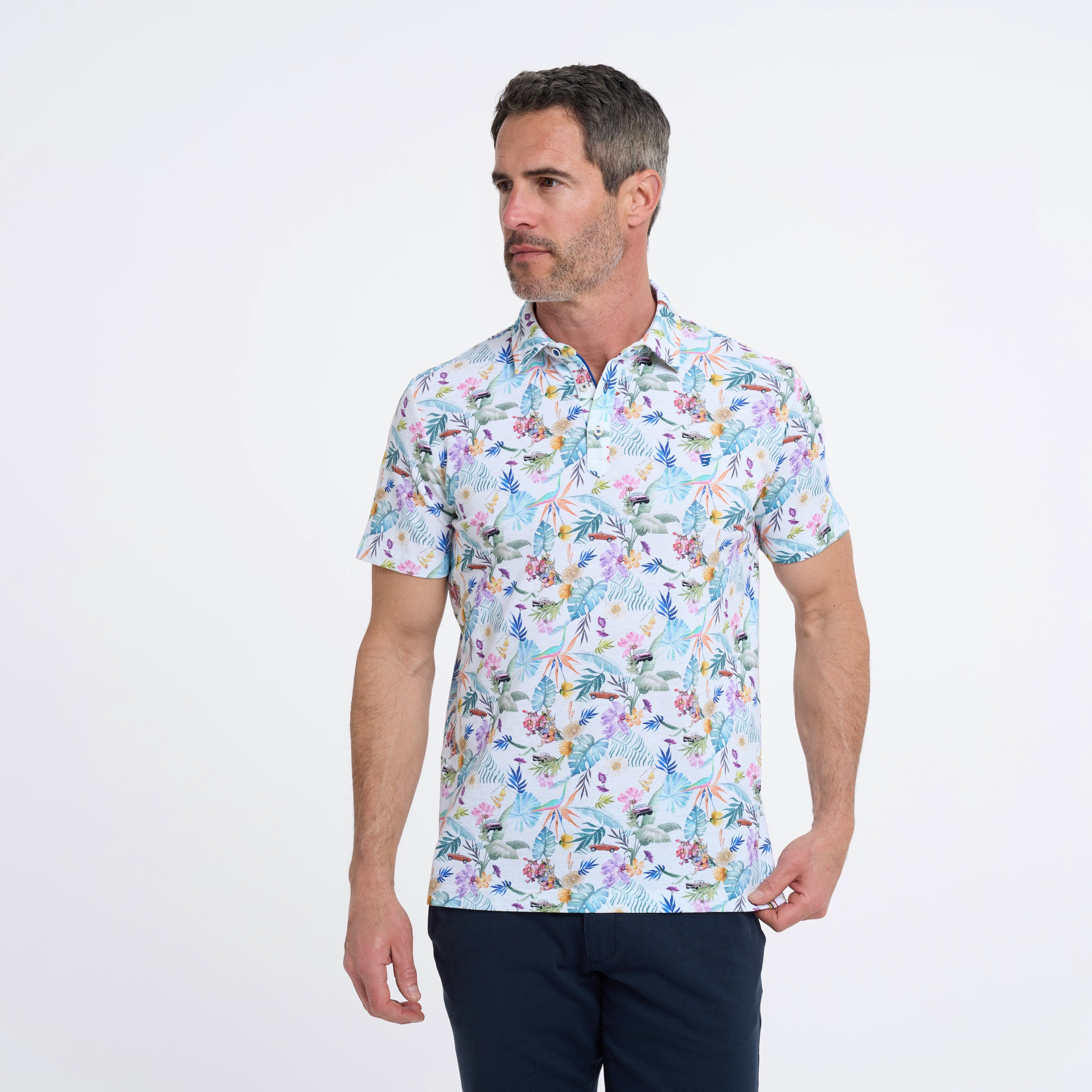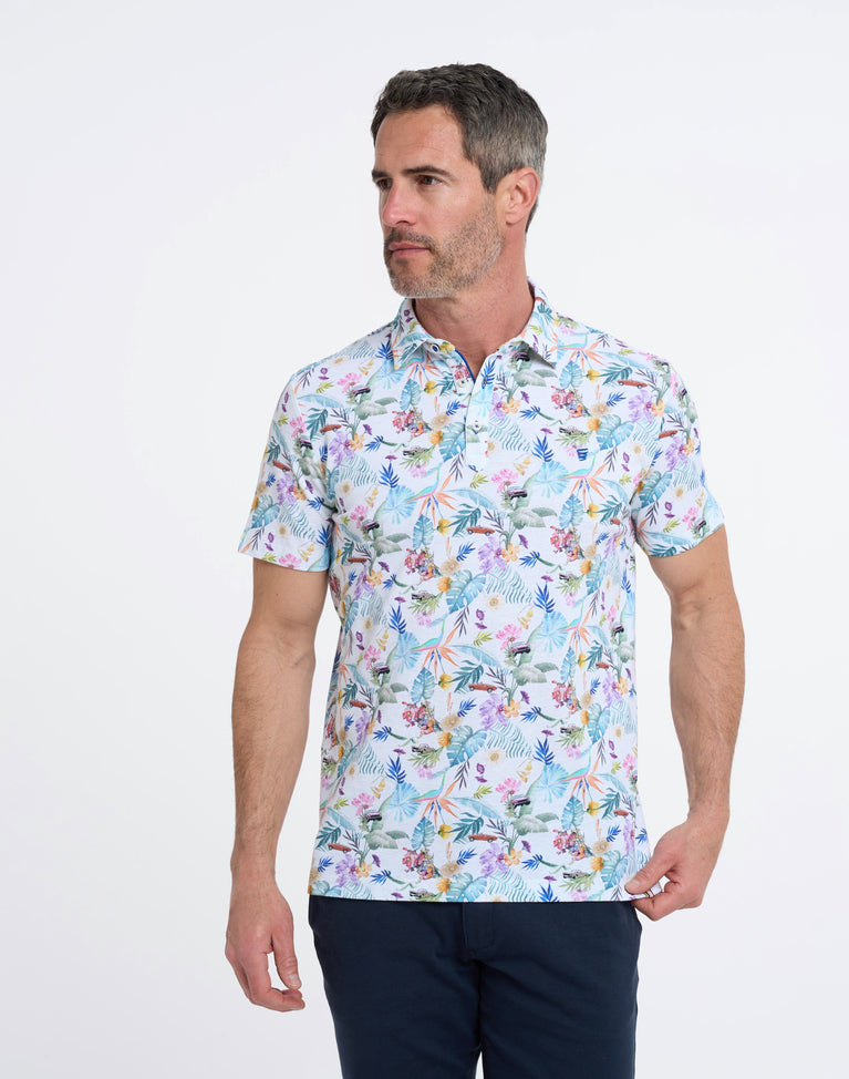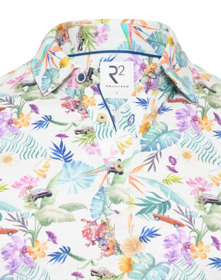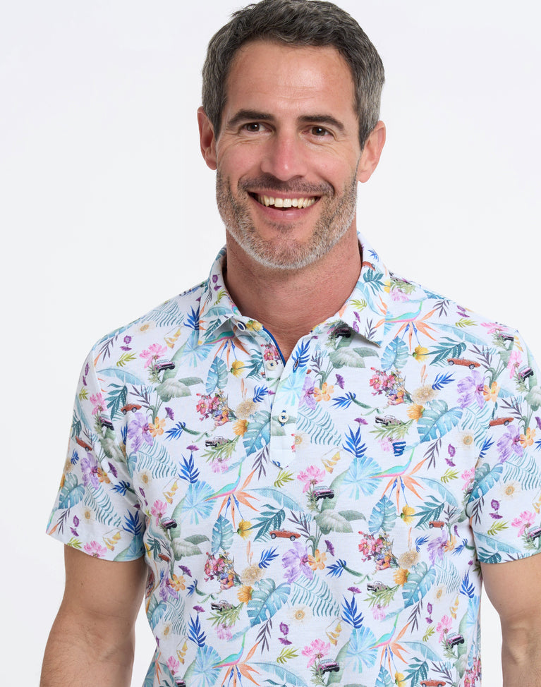 Verleihen Sie Ihrer Garderobe einen frischen Touch mit diesem gestrickten Polo, das aus einer luxuriösen Mischung aus 70 % Bio-Baumwolle und 30 % Leinen für ein atmungsaktives und bequemes Tragegefühl gefertigt ist. Der lebhafte Blumendruck verleiht dem klassischen Polodesign ein gewagtes, aber zeitloses Flair. Dieses umweltfreundliche Kleidungsstück ist perfekt für wärmere Tage und kombiniert mühelosen Stil mit nachhaltigen Materialien.