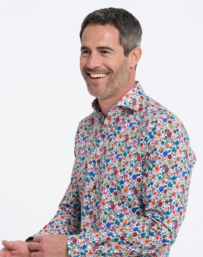 Dieses Hemd besteht aus einem Mix aus 97% Baumwolle und 3% Elastan und bietet die Weichheit von Baumwolle mit einem Hauch von Stretch für einen bequemen Sitz. Der Popelinestoff sorgt für eine knackige, glatte Textur, während der Blumendruck einen lebendigen, frischen Touch in Ihre Garderobe bringt. Dieses Hemd eignet sich sowohl für lässige als auch für halb-formelle Anlässe und verbindet mühelos Komfort und Stil.