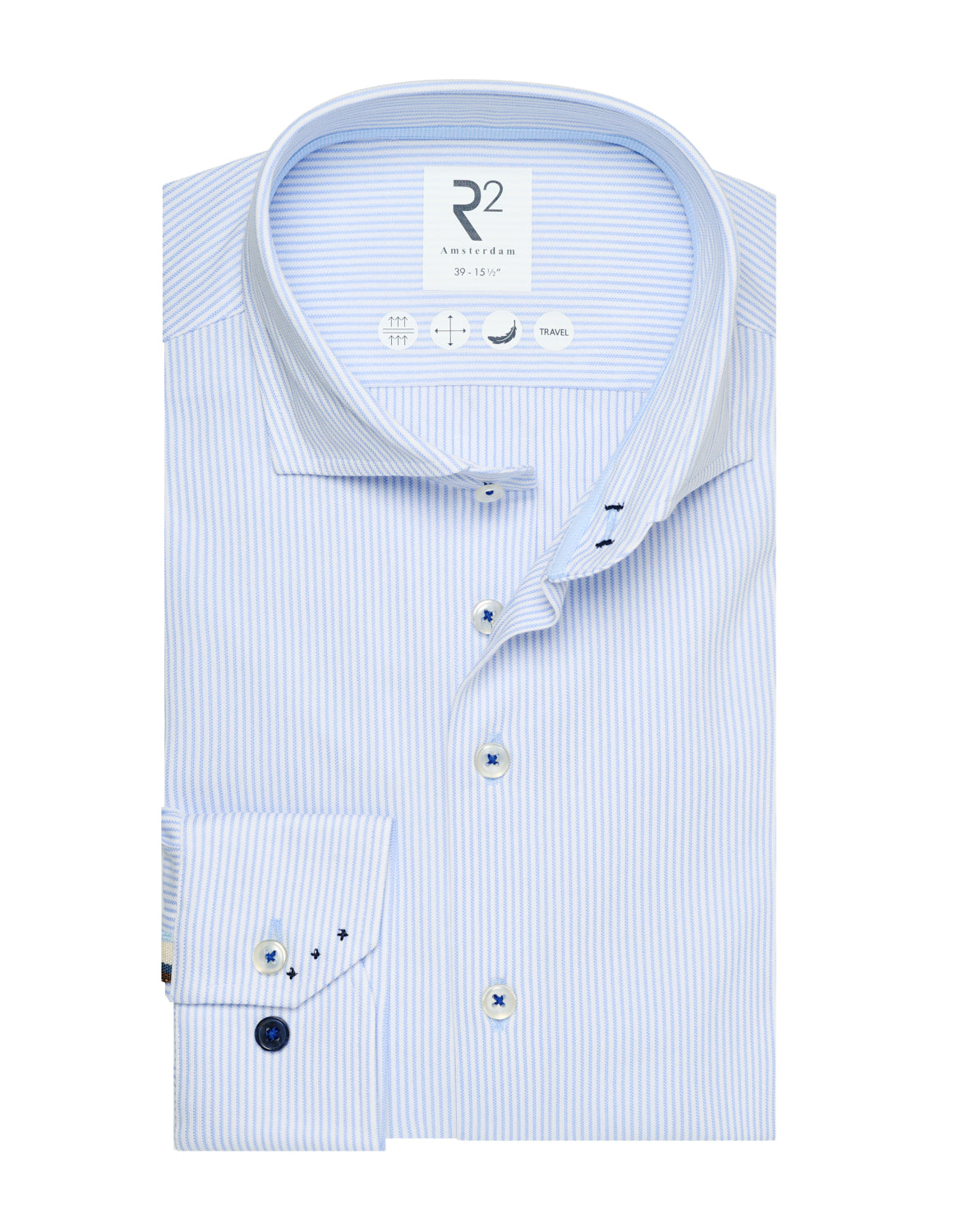 Hergestellt aus einem bequemen Stoff, der Flexibilität mit einem klaren Erscheinungsbild verbindet. Das gestreifte Design setzt einen klassischen Akzent und lässt sich sowohl zu formellen als auch zu legeren Anlässen problemlos tragen. Dieses Hemd ist knitterfrei und pflegeleicht und behält den ganzen Tag über seine Form.