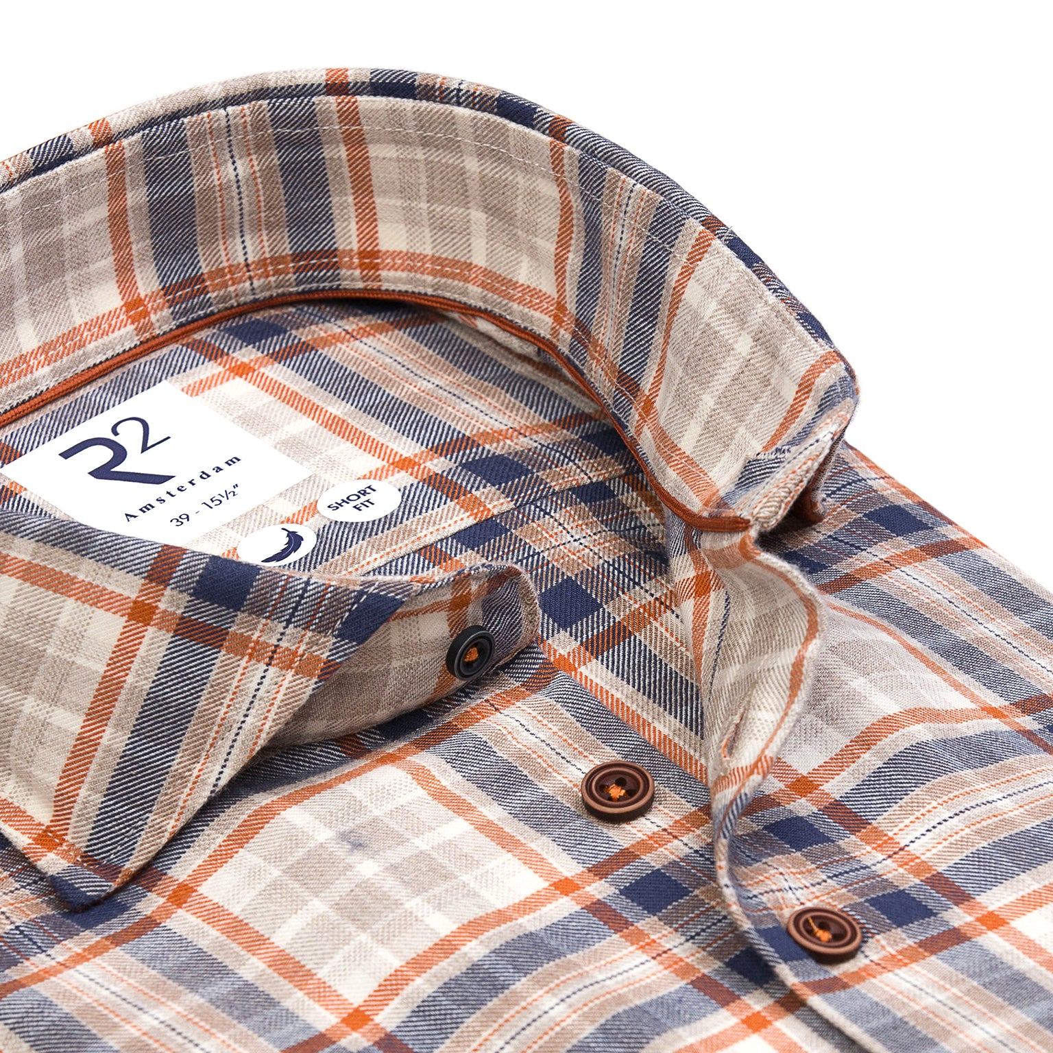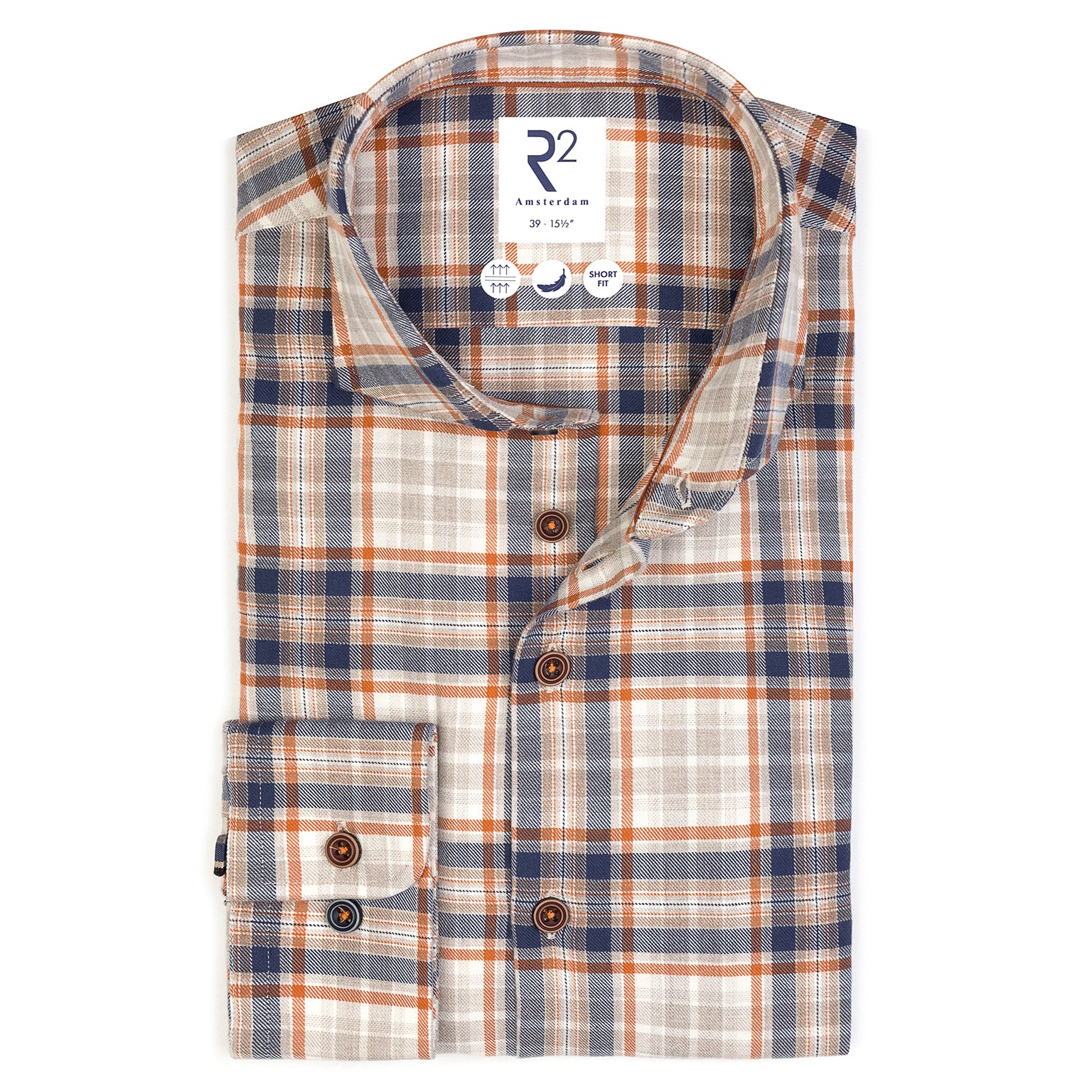 Cette chemise en coton sergé est ornée d'un motif à carreaux brique et cobalt. Naturellement respirante et polyvalente, elle allie confort et style intemporel.