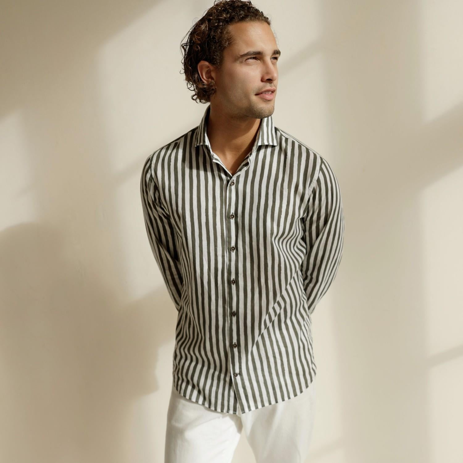 Chemise en lin stretch à rayures