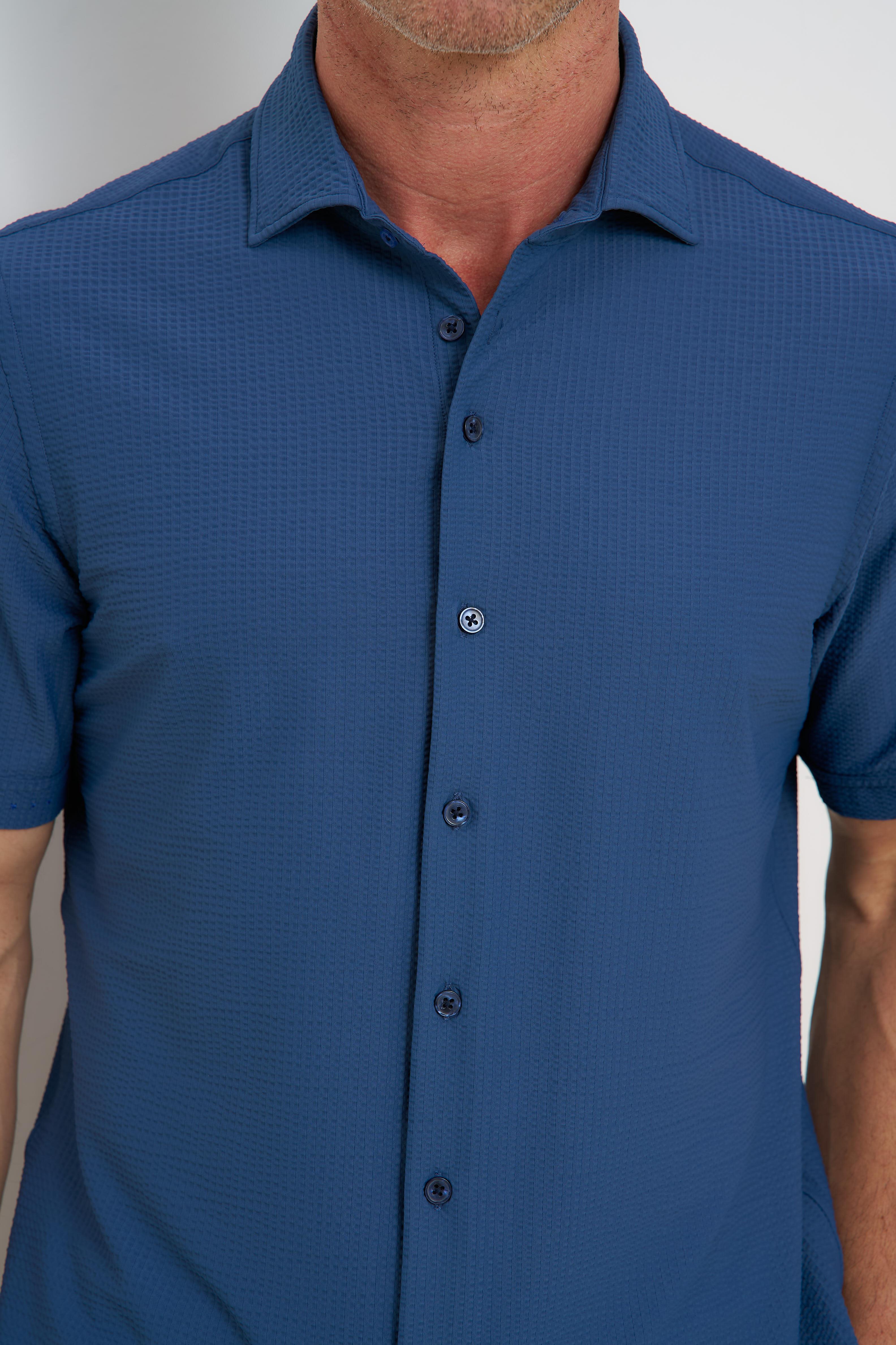 Cette chemise élégante et confortable à manches courtes, confectionnée en tissu seersucker léger, est un incontournable de toute garde-robe. Le mélange de polyamide et d’élasthanne de haute qualité offre une légère élasticité, une bonne respirabilité et une finition infroissable. Parfaite pour créer un look décontracté et soigné lors des journées chaudes.