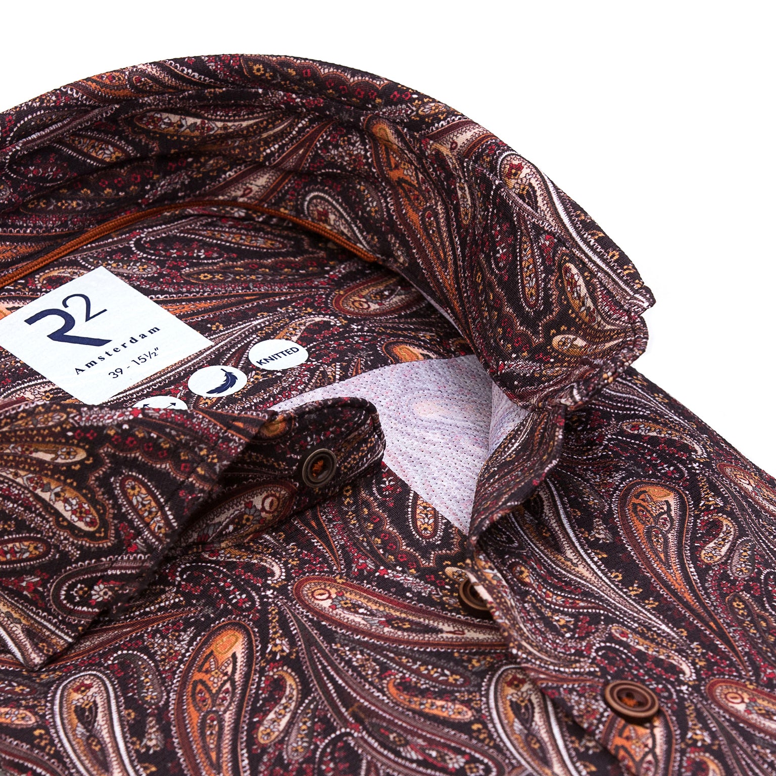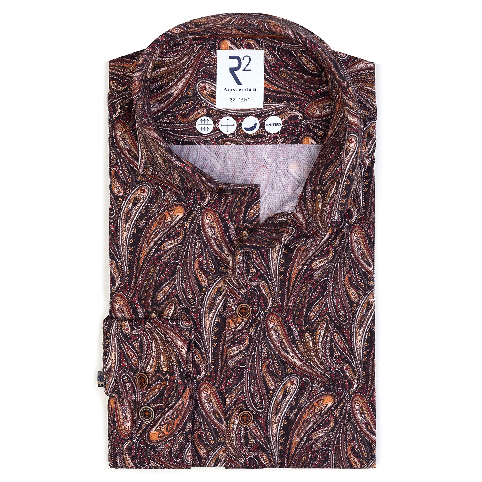Cette chemise extensible en armure ratière est conçue avec un imprimé paisley bordeaux raffiné. Fabriquée à partir d'un mélange de polyamide et d'élasthanne, elle offre souplesse, confort et caractère.