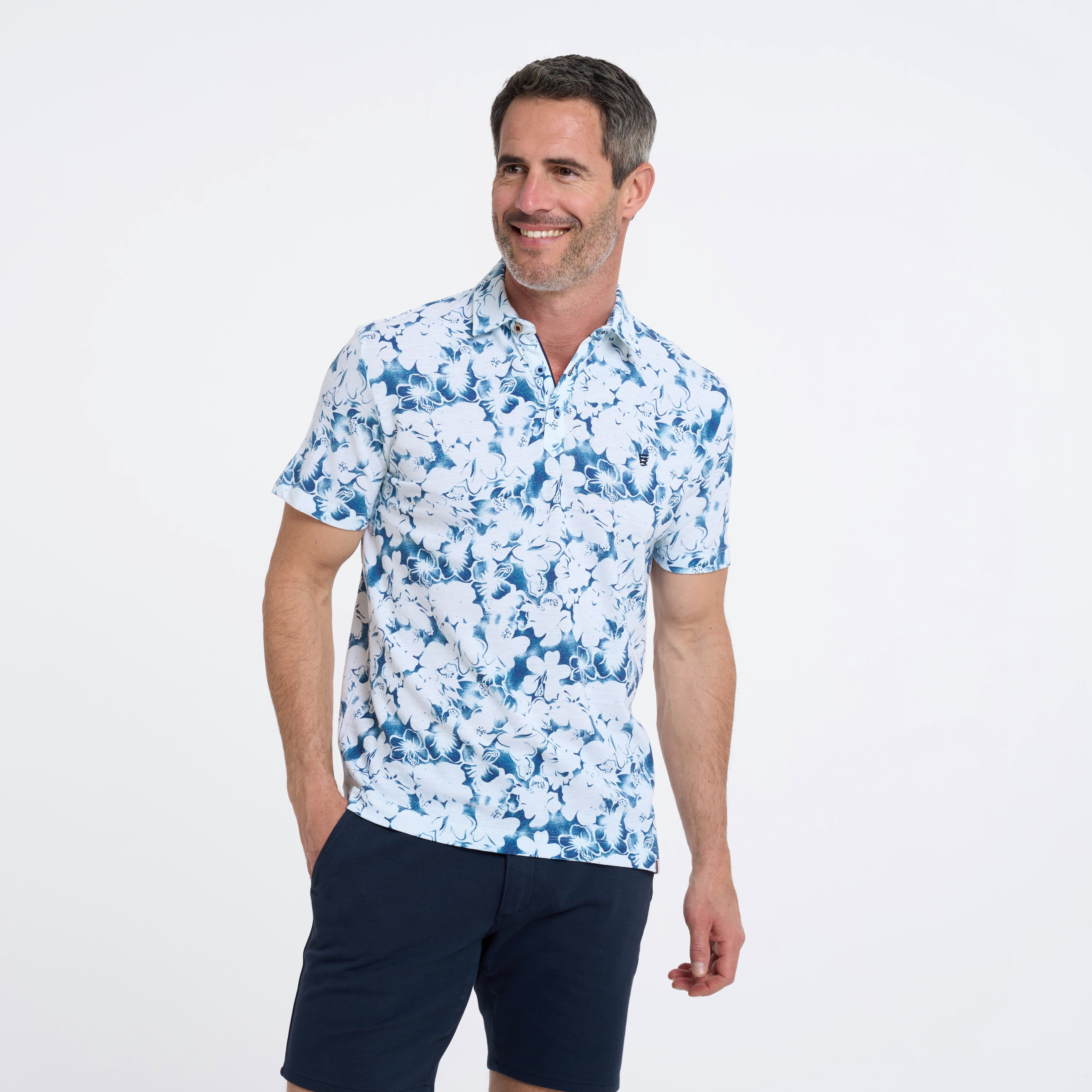 Geef je garderobe een frisse touch met deze gebreide polo, gemaakt van een luxueuze mix van 70% biologisch katoen en 30% linnen voor een ademende en comfortabele pasvorm. De levendige bloemenprint geeft het klassieke polodesign een gedurfde, maar tijdloze flair. Perfect voor warmere dagen, combineert dit milieuvriendelijke item een moeiteloze stijl met duurzame materialen.