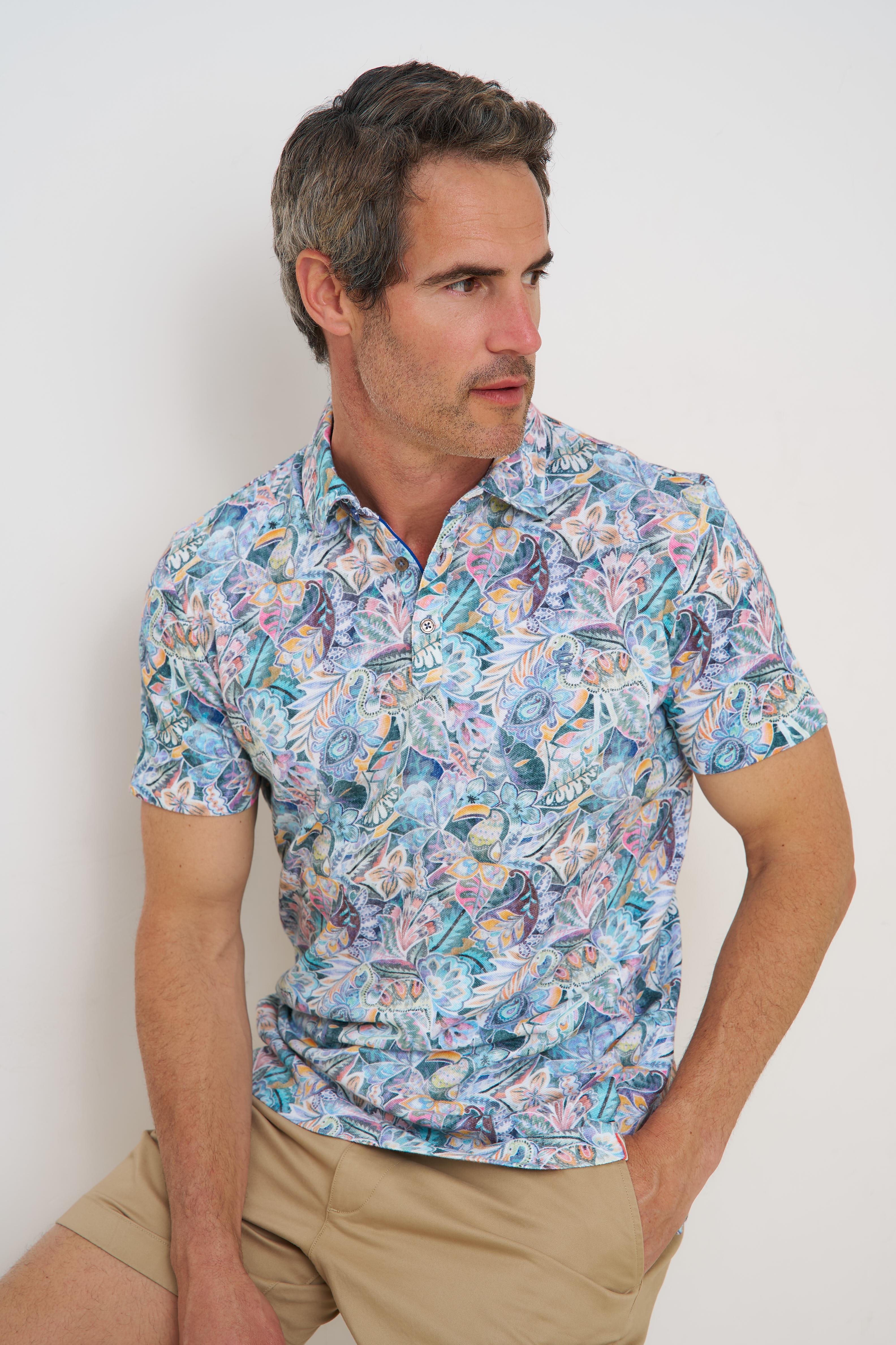 Bloemenprint linnenmix polo