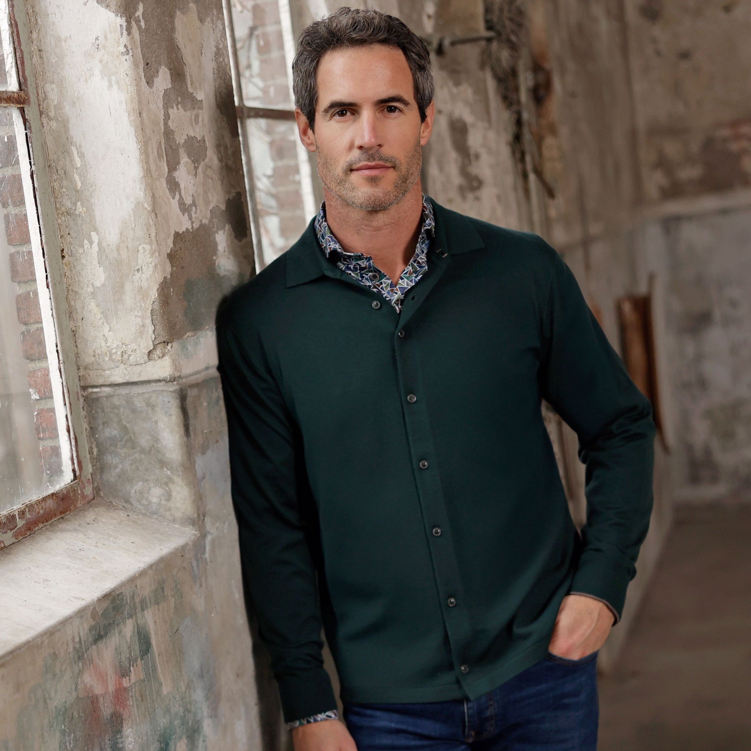 Extra lange mouwen. Retroprint single jersey stretchoverhemd Extra lange mouwen. Retroprint single jersey stretchoverhemd