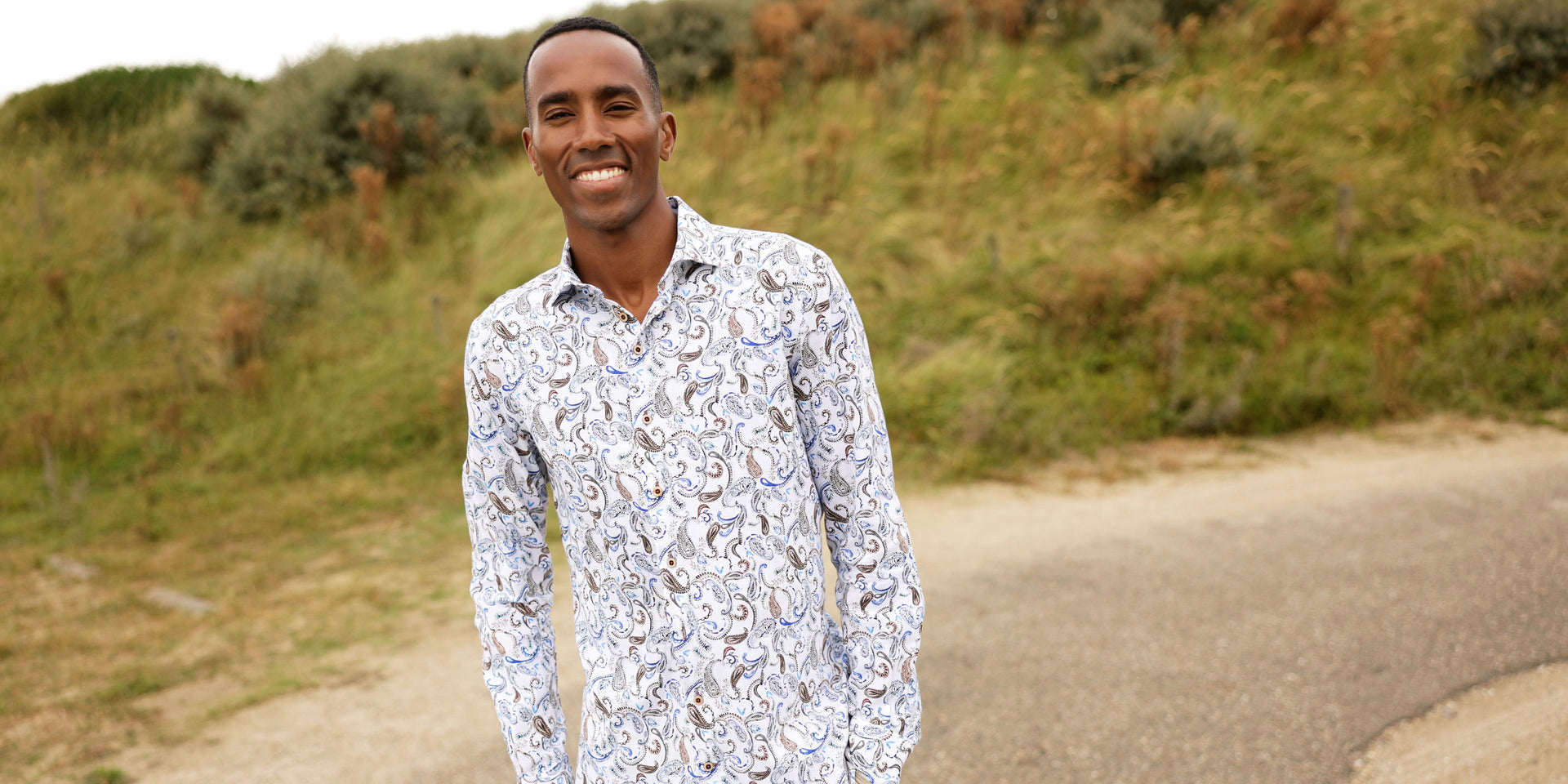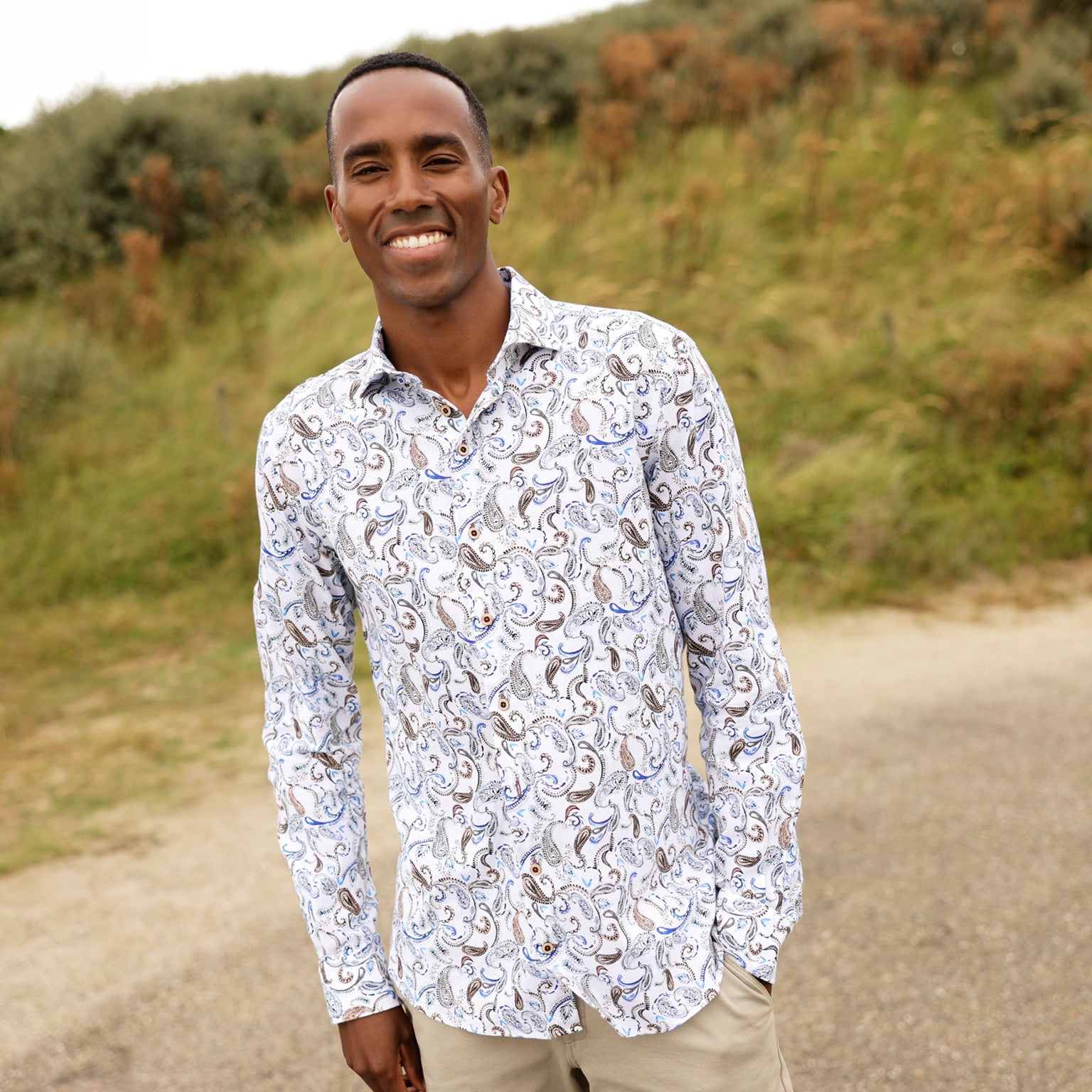 Bedrukt linnen stretch overhemd Bedrukt linnen stretch overhemd