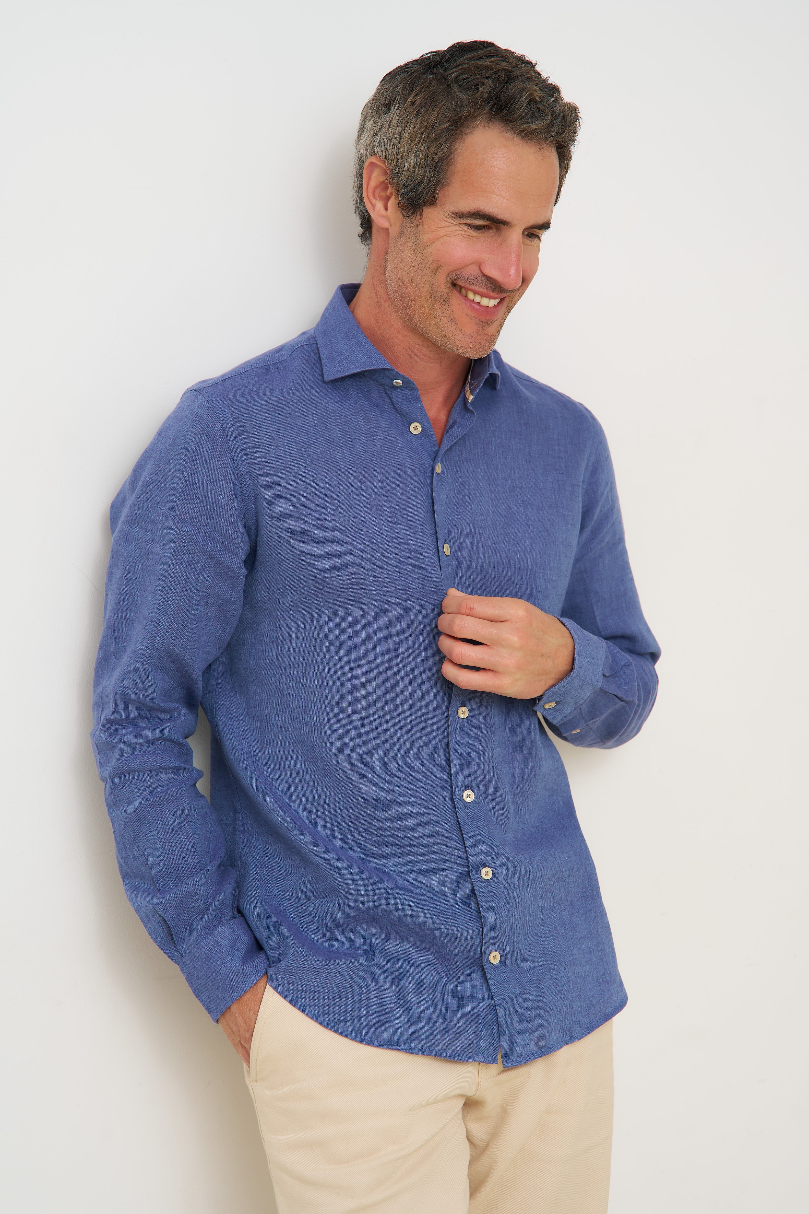 Dit linnenmix overhemd staat bekend om zijn lichte en ademende karakter. Het is ontworpen met extra lange mouwen, wat praktisch is voor langere mannen en zorgt voor een goed gebalanceerde pasvorm.