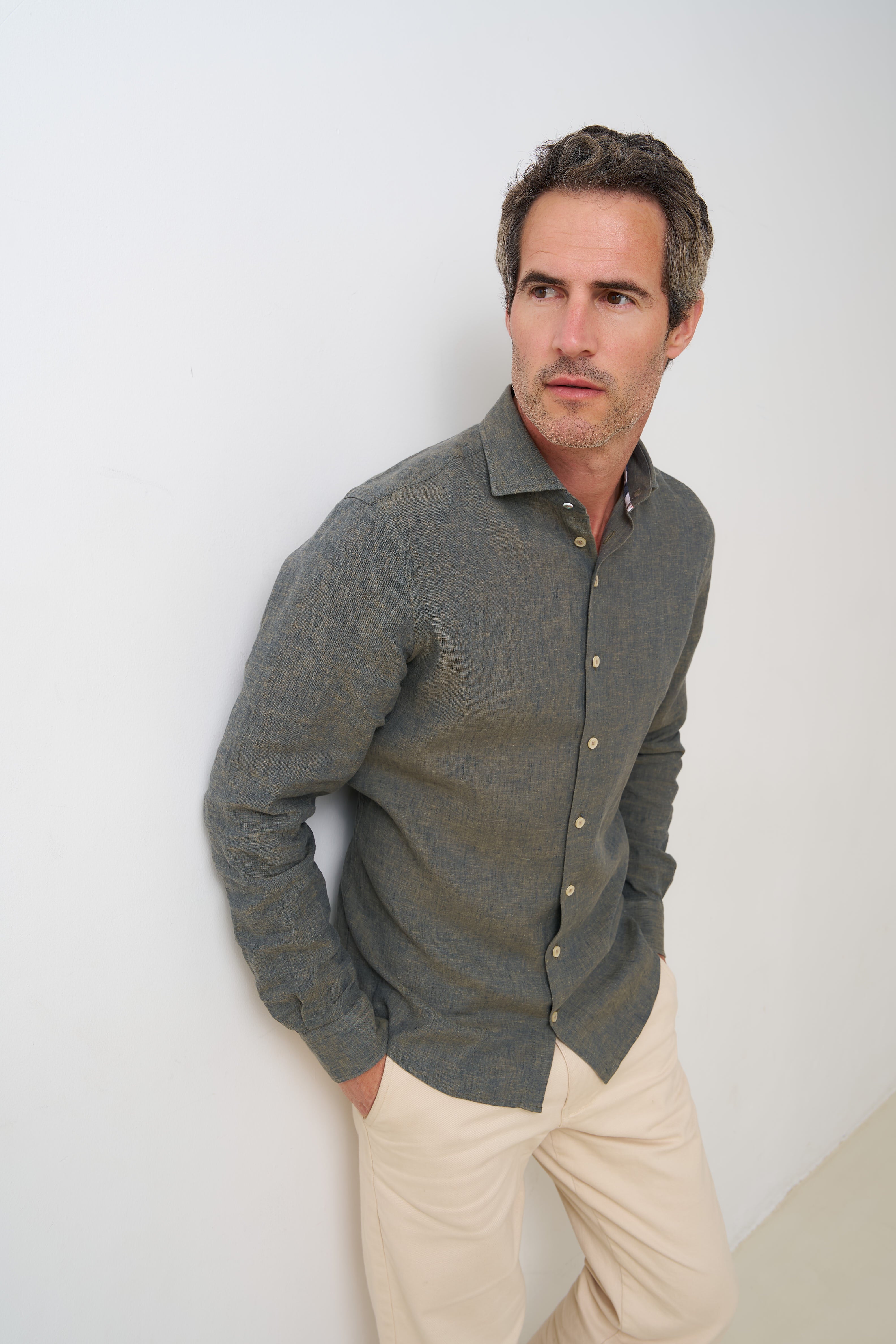 Extra lange mouwen. Linnenmix overhemd