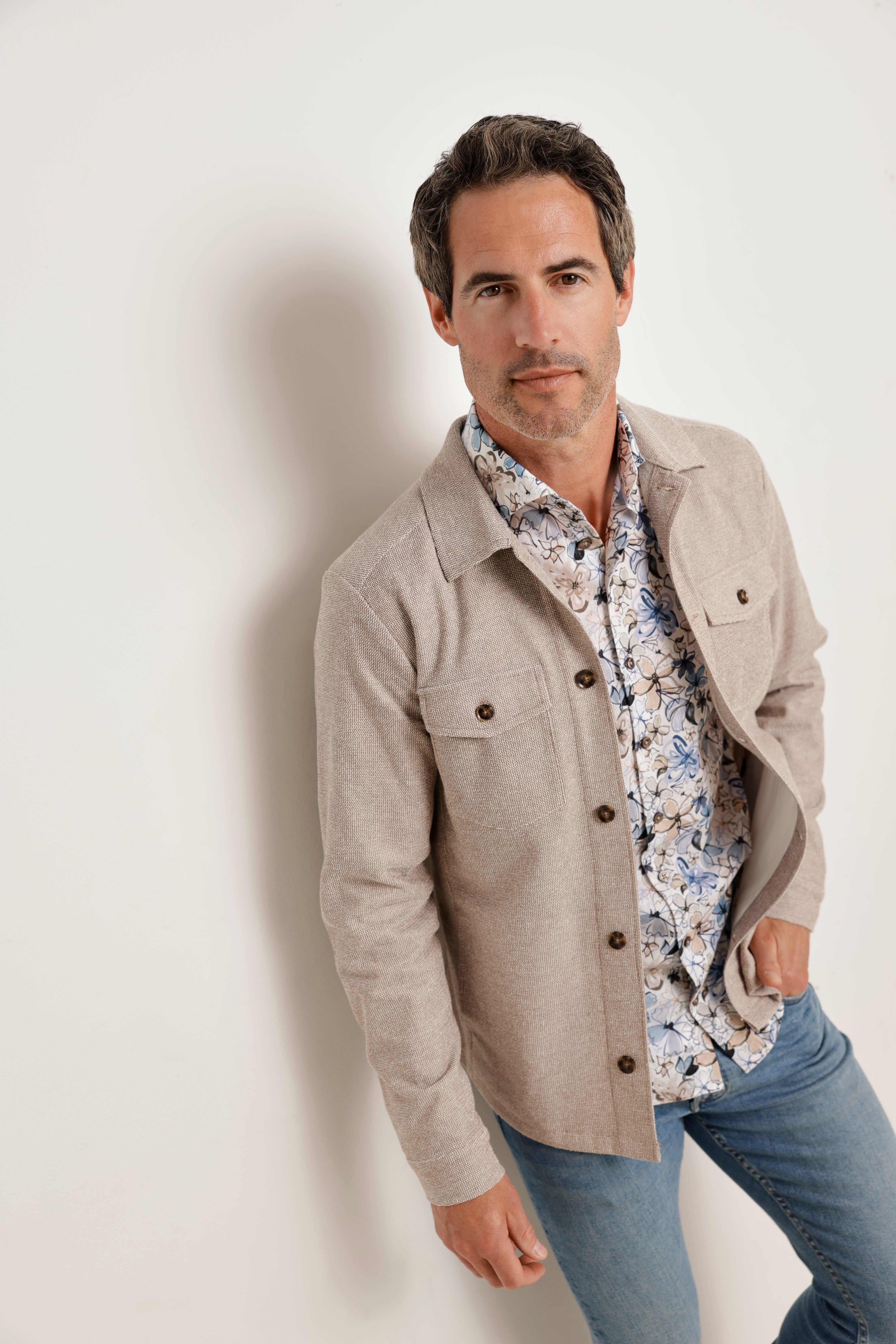 Dit knitted overshirt van een zachte stretchmix biedt comfort, flexibiliteit en een eigentijdse look. De ademende breistructuur maakt het geschikt om het hele jaar door te dragen, terwijl de getailleerde snit een verfijnde touch toevoegt. Perfect om over een t-shirt te dragen.
