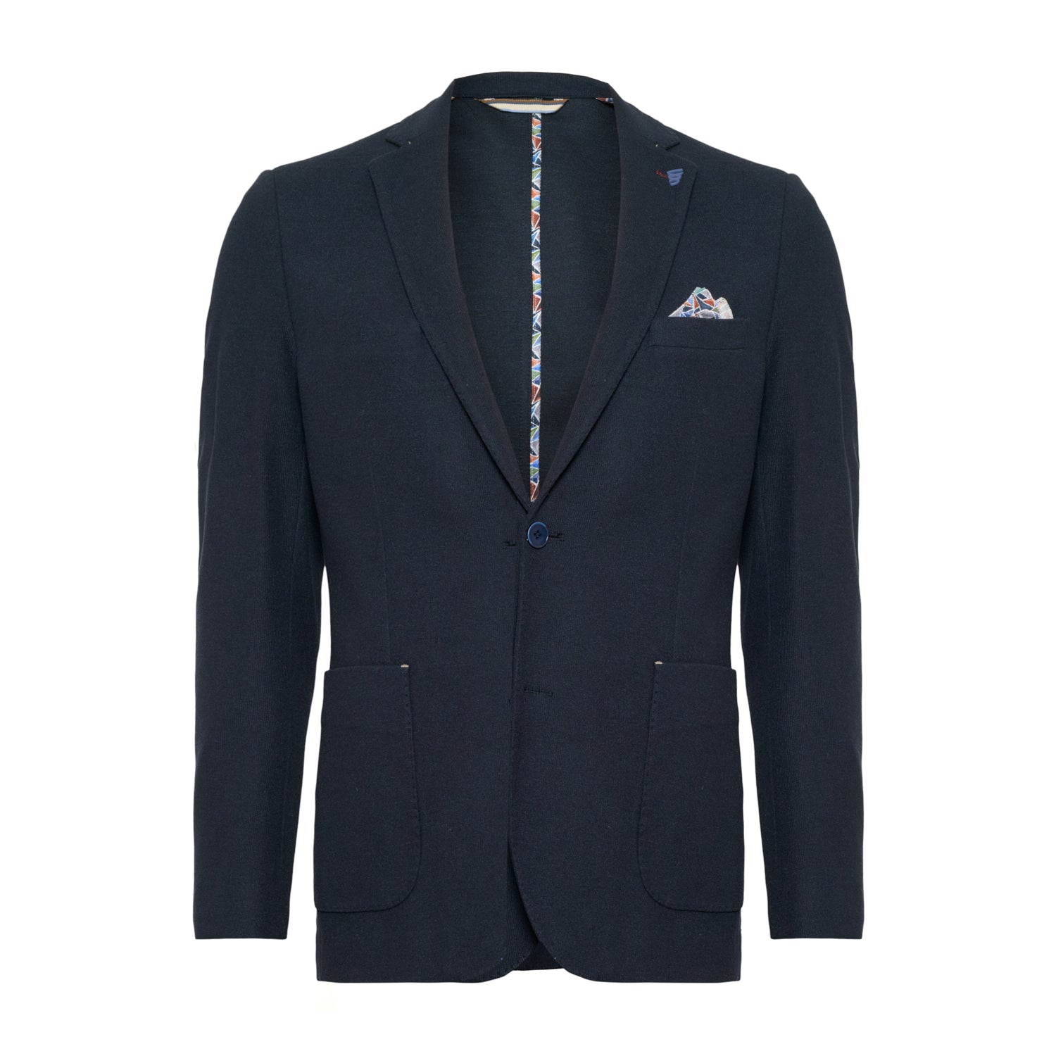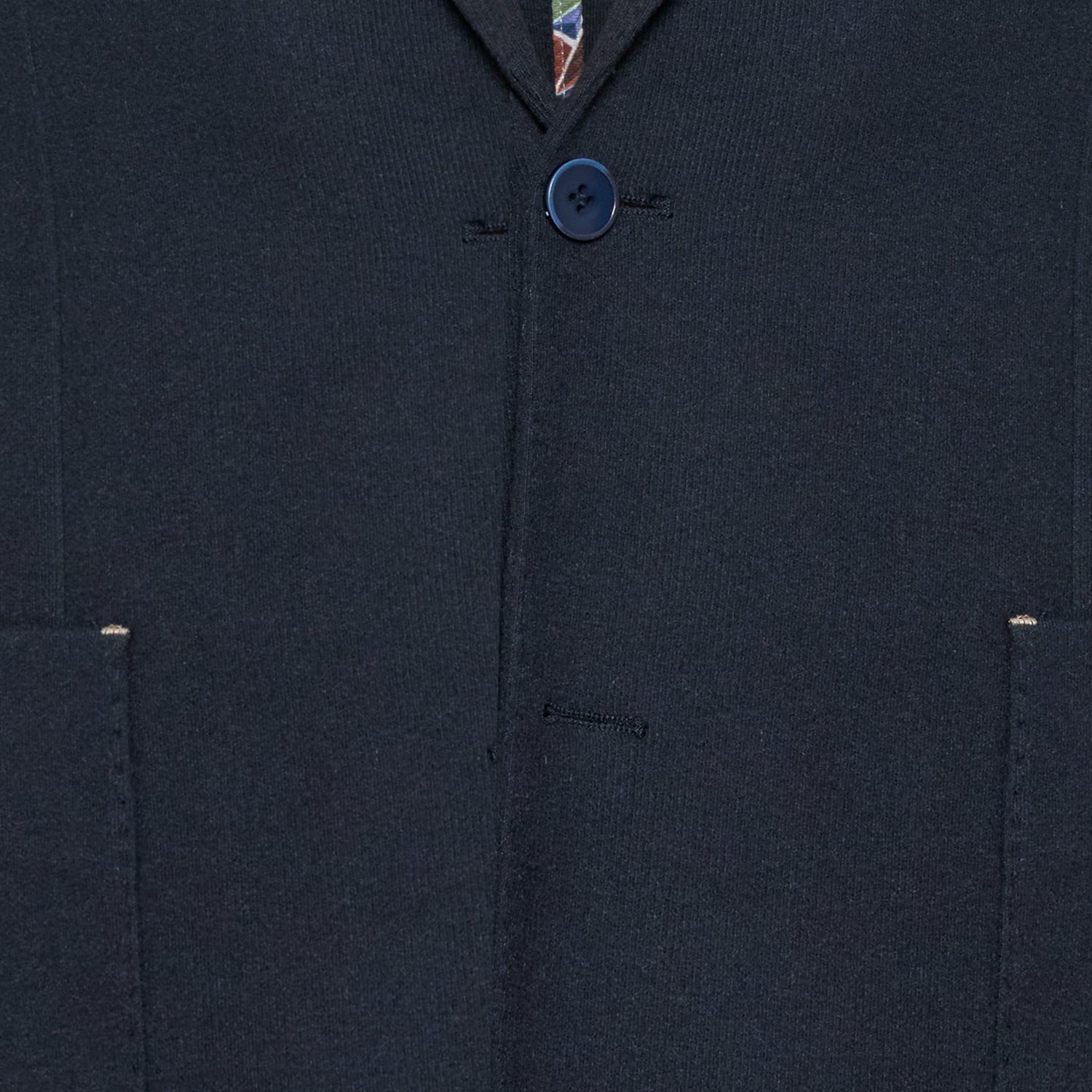 Crafted in a refined rib-knit, this stretch jacket offers a streamlined silhouette with natural flexibility. A contemporary piece that combines lightweight comfort with understated elegance.