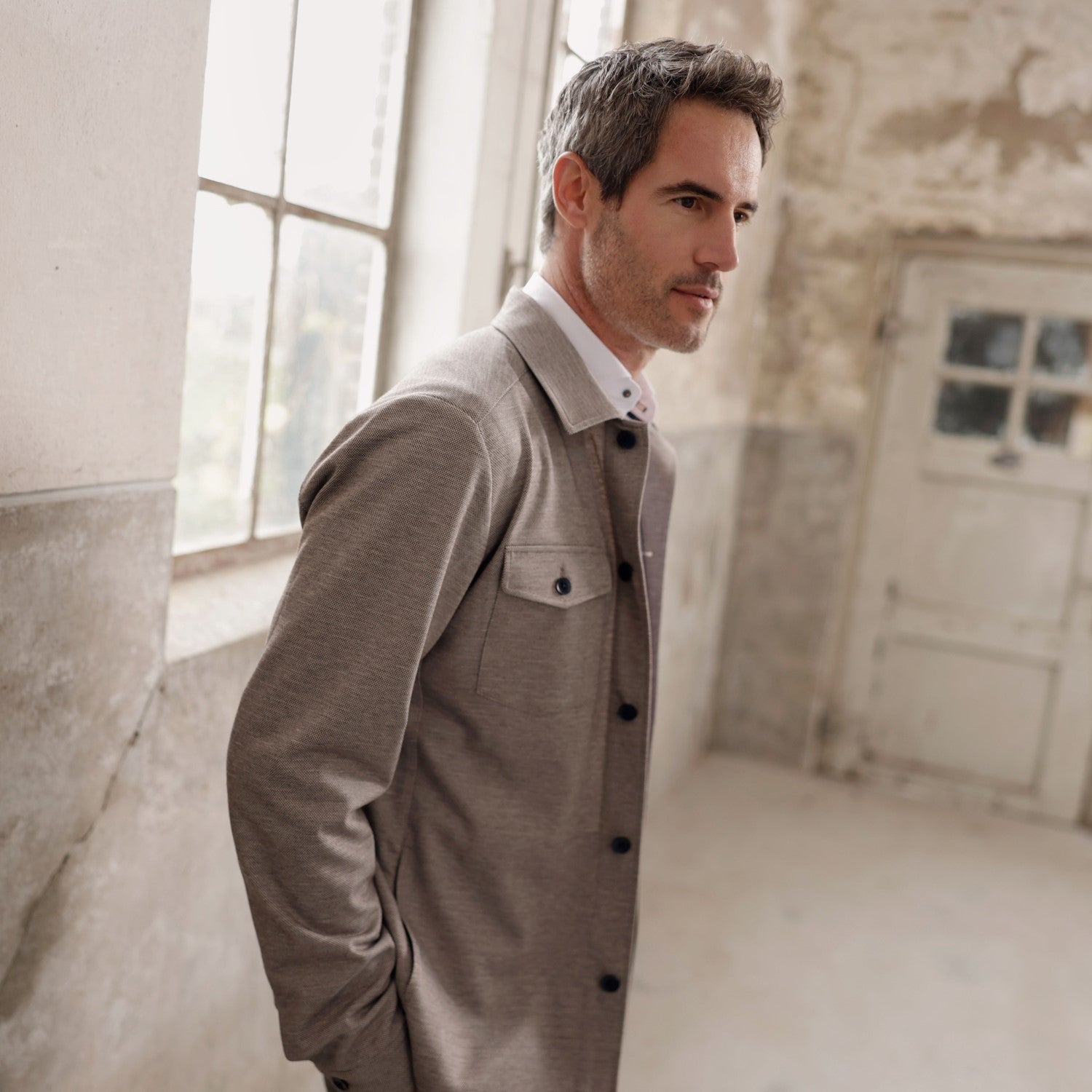 Dit knitted overshirt van een zachte stretchmix biedt comfort, flexibiliteit en een eigentijdse look. De ademende breistructuur maakt het geschikt om het hele jaar door te dragen, terwijl de getailleerde snit een verfijnde touch toevoegt. Perfect om over een shirt te dragen of solo, het combineert ontspannen verfijning met alledaagse functionaliteit.