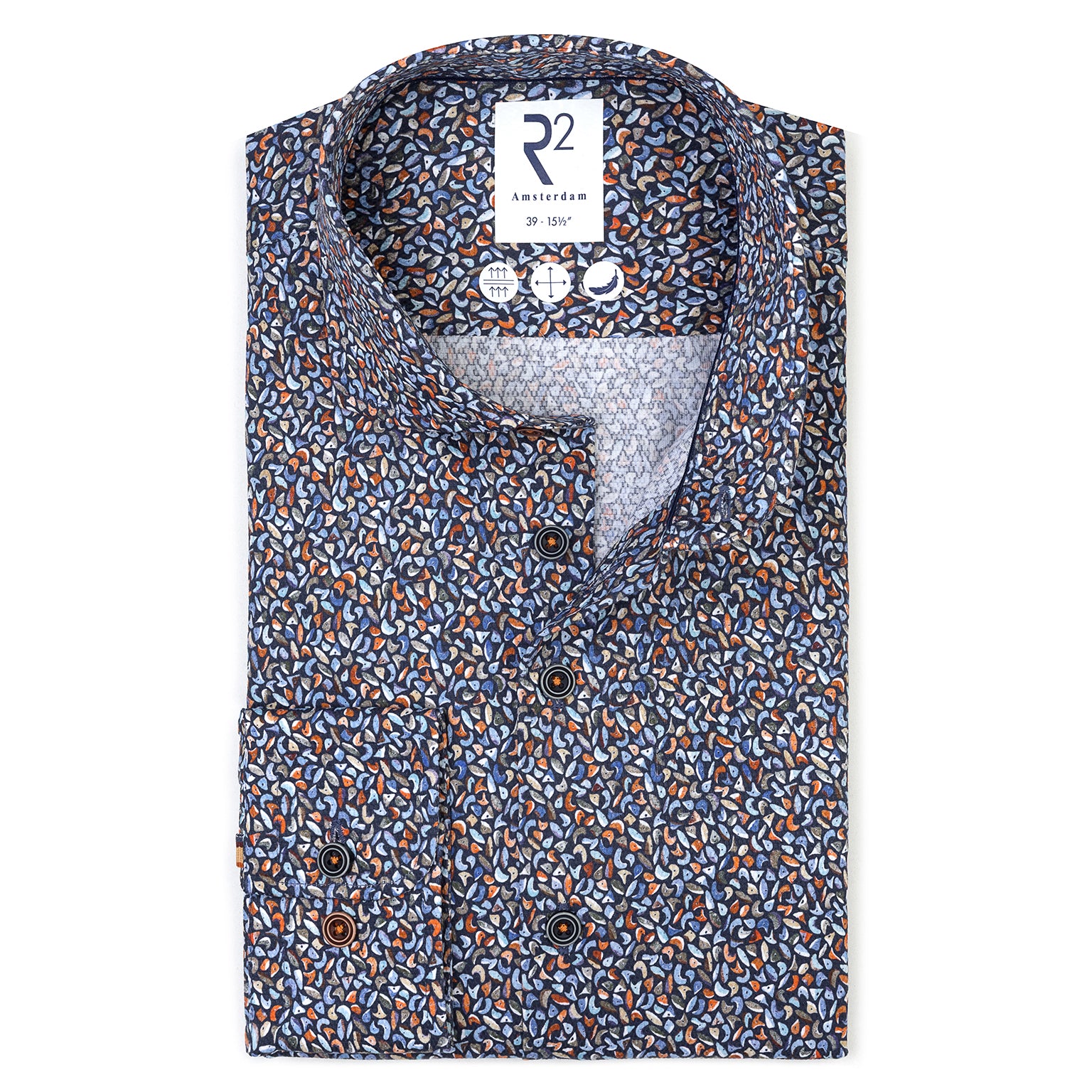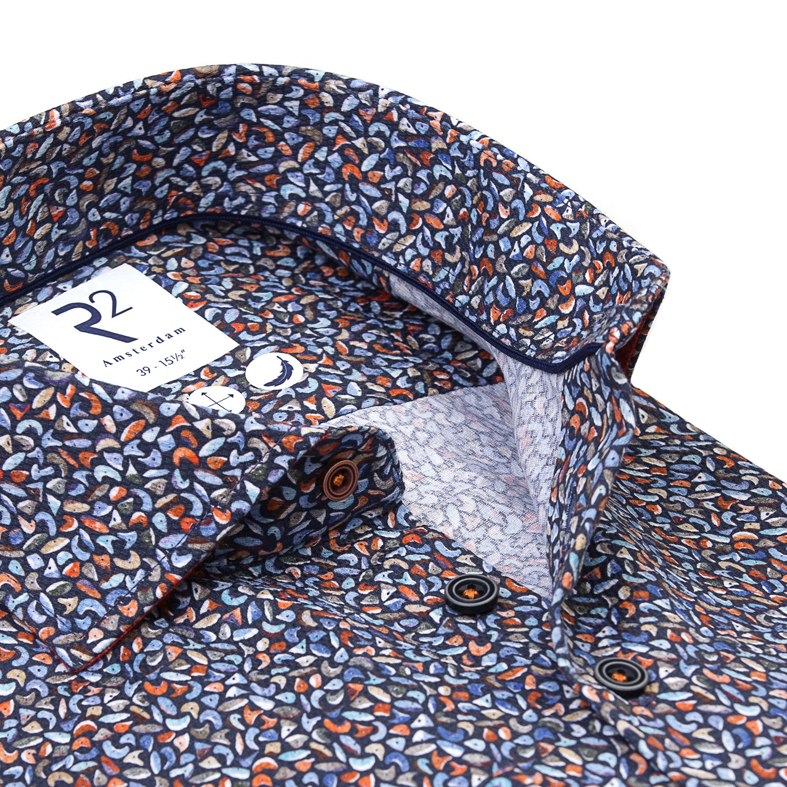 Dit katoenen shirt heeft een veelkleurige klimwandprint op dobby. Speels en toch verfijnd, biedt het ademend comfort en een uniek karakter voor een ontspannen en verfijnde uitstraling.