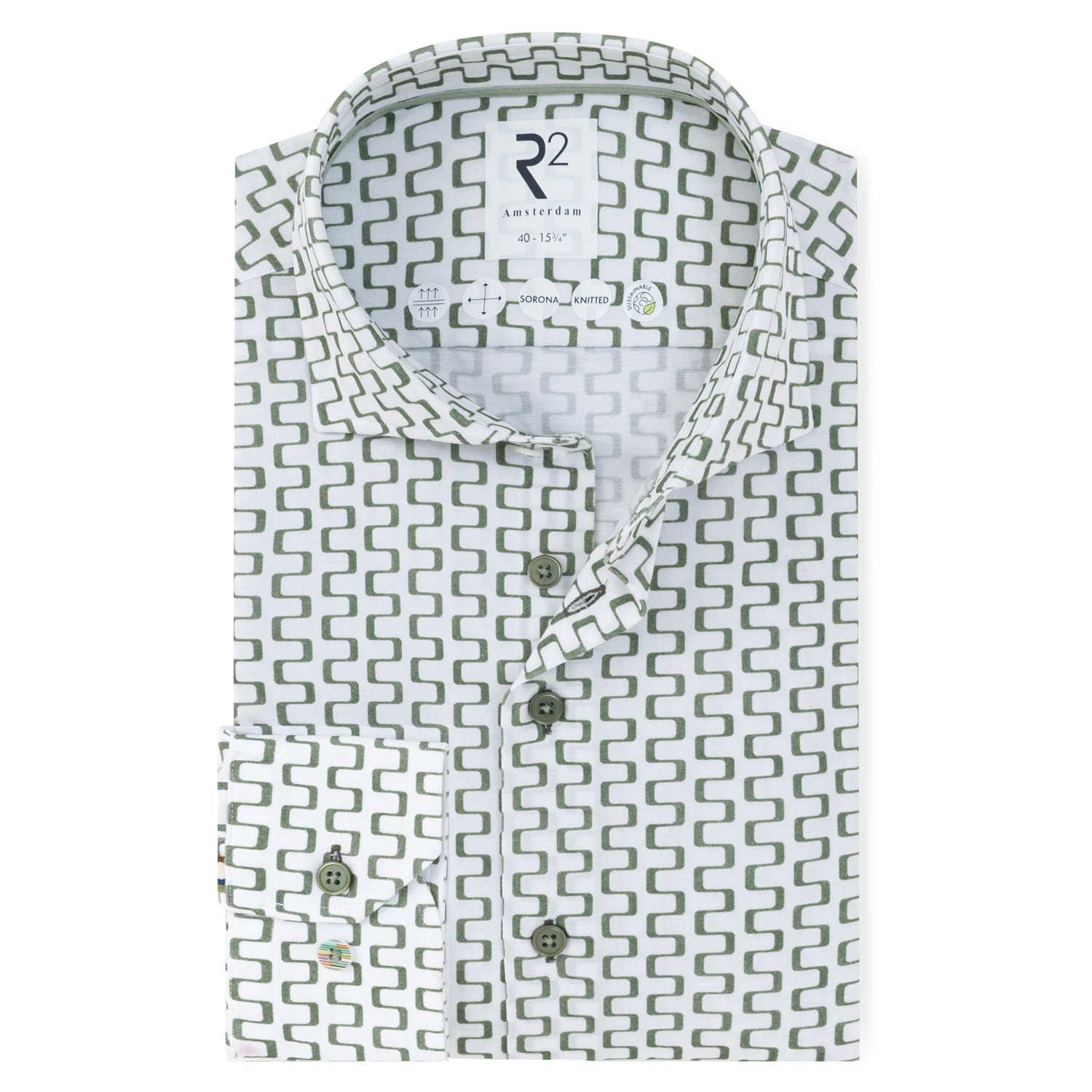 Gemaakt van een katoenmix met Sorona®, een hoogwaardige vezel die bekend staat om zijn elasticiteit en duurzaamheid. De stof biedt flexibiliteit en behoudt zijn vorm, terwijl de print karakter toevoegt aan het ontwerp. Kreukvrij en onderhoudsvriendelijk — ideaal voor dagen waarop zowel comfort als een strakke uitstraling vereist zijn.