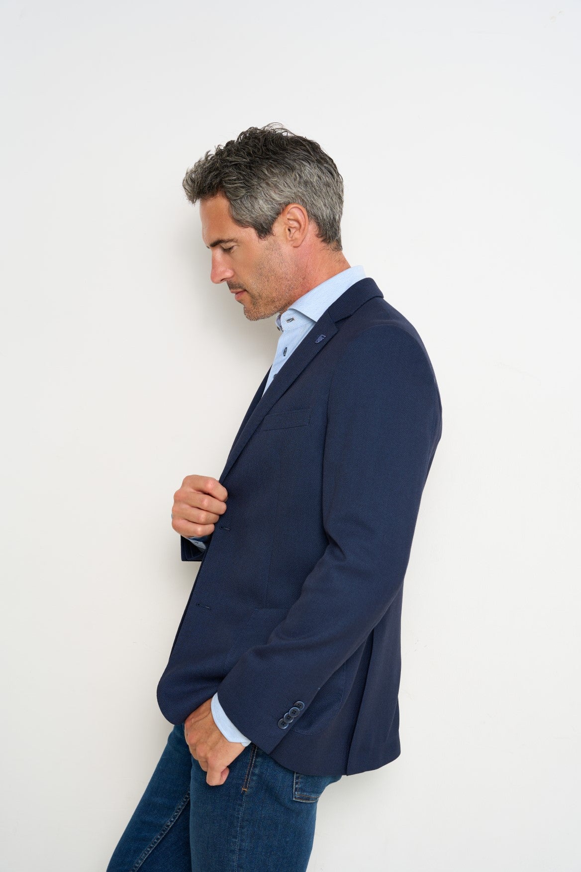 A modern jersey jacket crafted from a smooth polyester–viscose blend with added stretch. Lightweight, flexible and easy to style — the ideal layer for refined casual looks.