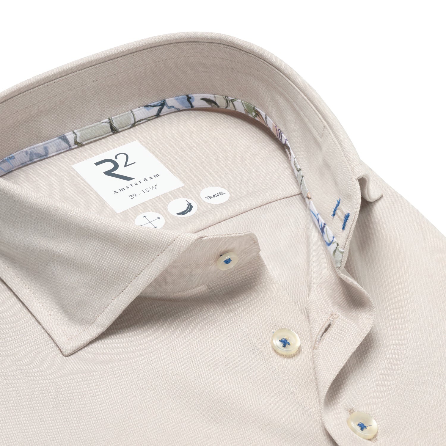 This travel shirt is made from a comfortable fabric with a linen blend for a light, summery look. It combines the appearance of a classic shirt with a relaxed, easy feel, making it ideal to wear on summer days. Easy to maintain and resistant to creasing, this shirt keeps its shape throughout the day — ideal for summer travel and long days on the go.